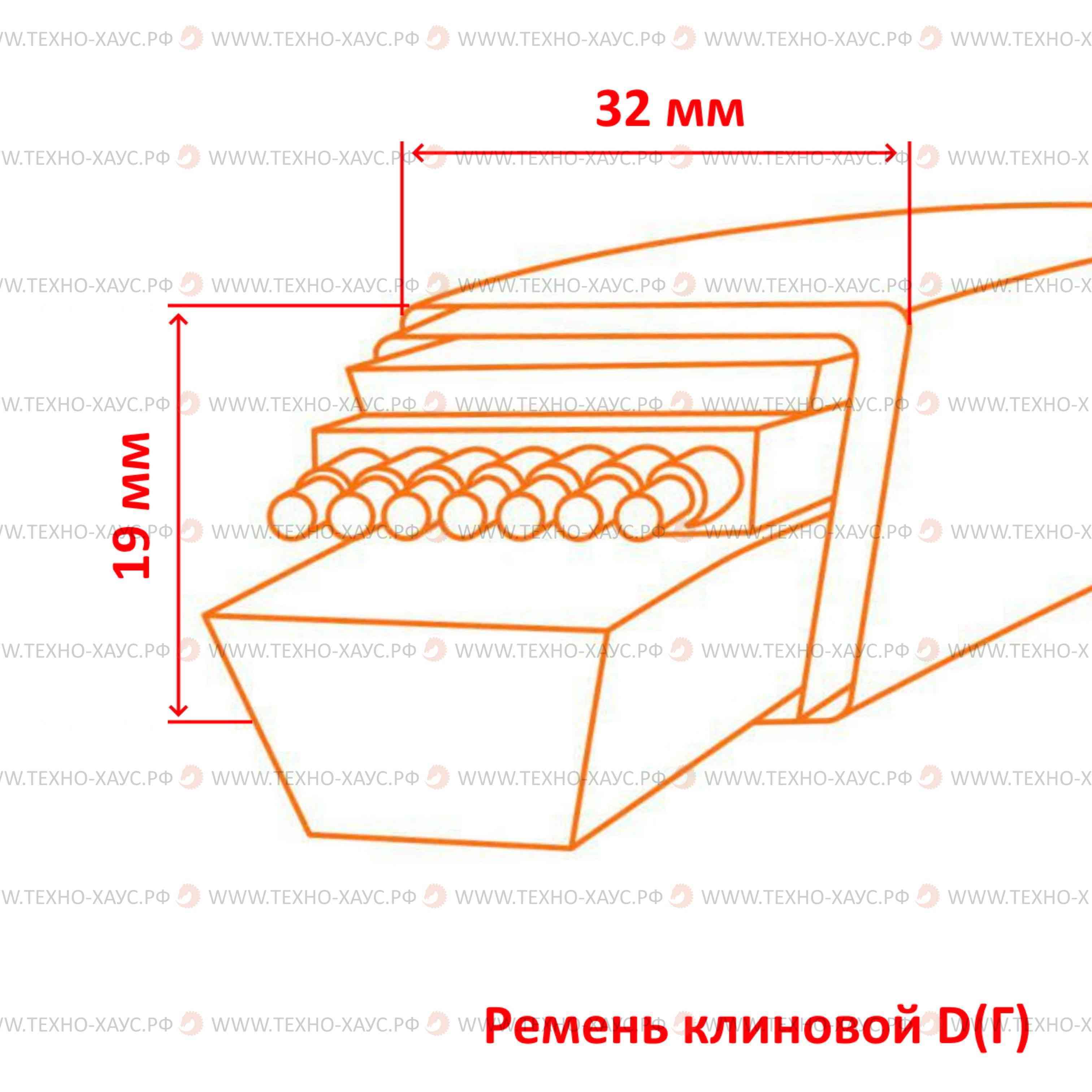 Ремень приводной клиновой нормального сечения D(Г) (иногда называют его 32), соответствует ГОСТ 1284.1-89, применяется в стандартных шкивах. Имеет сечение 32х19 мм.